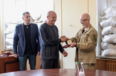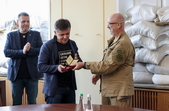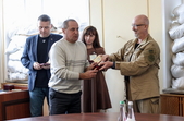 На фото видно, що Олексій Резніков вручає медалі «За сприяння Збройним Силам України» (нагороджуються працівники Збройних Сил України та інші особи за значний особистий внесок у справу розвитку Збройних Сил України, плідну співпрацю з Міністерством оборони України та інші видатні заслуги перед Збройними Силами України) та нагрудний знак «Знак пошани» (нагороджуються військовослужбовці та працівники Збройних Сил України, а також інші особи за значний особистий внесок у справу розбудови, розвитку та забезпечення життєдіяльності Збройних Сил України, досягнення високих показників у військовій, науковій, освітянській та інших сферах діяльності, бездоганну сумлінну службу (працю) та видатні заслуги перед Збройними Силами України).