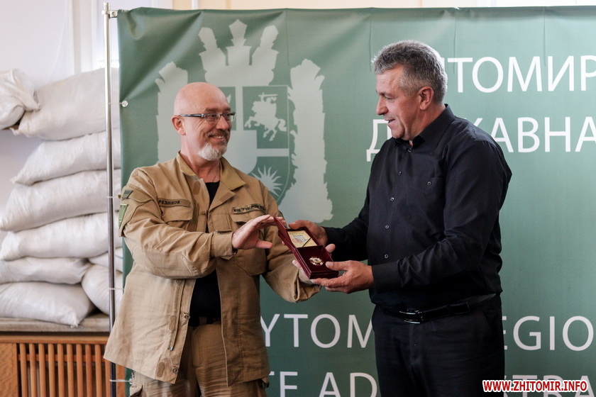 Сьогодні на Житомирщині міністр оборони Олексій Резніков вручив нагороди жителям Житомирщини, які з перших днів війни своєю щоденною працею робили важливий внесок у національний спротив російському вторгненню.
