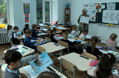 «Мені тут подобається, дуже багато діток, дуже добра вчителька і дуже багато місця тут. Ми тут будемо навчатися чотири роки і потім ми перейдемо у ту школу. Вірю, що її відбудують. Там намалюють малюнки на стінах фарбою з балончика, і буде дуже красива школа», – розмірковує першокласник Максим.