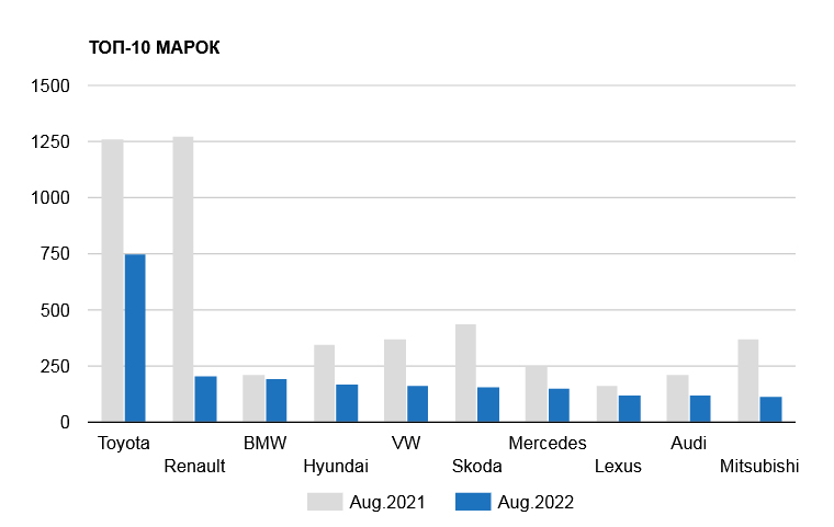 «Найбільшим попитом в останній місяць літа користувались автомобілі марки Toyota, яких було зареєстровано 750 одиниць. У порівнянні з минулим роком серпнева реалізація нових Тойот в Україні зменшилась на 40%. Водночас відносно липня поточного року, попит на авто цієї японської марки зріс на 26%», - йдеться у повідомленні.