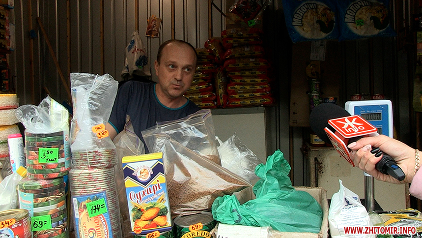 «Новий урожай, запашна гречка, люди потрошку беруть собі на запас, поки ціна хороша. Гречка 55 грн, наша «Озерянка», житомирська. Поки магазини ціни не знизили, то люди беруть на базарі», – розповідає продавець Сергій.