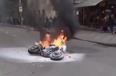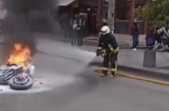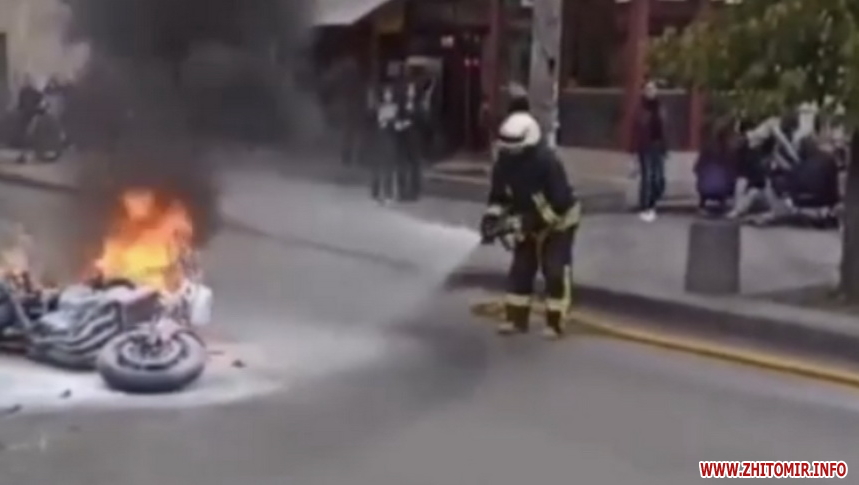 Про це Житомир.info повідомили читачі. Відео з рятувальниками, яку тушать охоплений вогнем мотоцикл, оприлюднили в Instagram.
