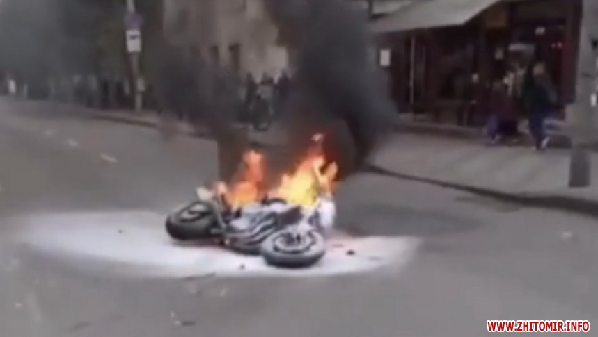 В Житомирі 17 вересня біля перехрестя вулиць Велика Бердичівська та Івана Кочерги трапилася дорожньо-транспортна пригода, внаслідок якої мотоцикліст отримав травми, а мотоцикл загорівся.
