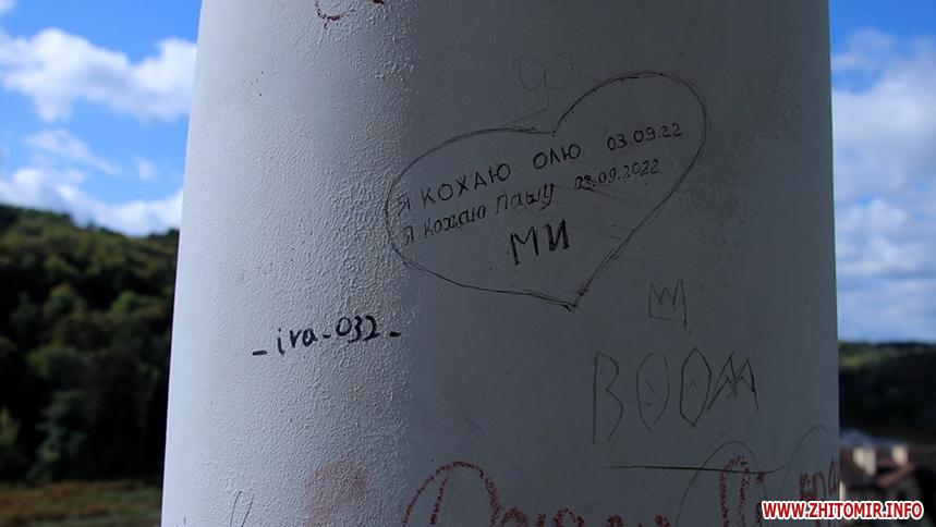 Зізнавались у коханні – так пояснили свій вчинок молоді люди, які зробили напис на мосту в житомирському парку Гагаріна. Подію зафіксували камери відеоспостереження Міського інформаційного центру 16 вересня. За незвичний спосіб висловлення почуттів друзі отримали замість романтичного – побачення з поліцією.