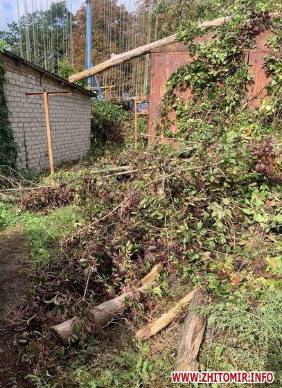 Негода, що панувала в Житомирській області упродовж минулих вихідних, 17-18 вересня, наробила збитків. Так, у житомирському парку імені Гагаріна та гідропарку вітер повалив дерева. А на Черняхівщині гілка дерева впала на будівлю дитячого садочка.