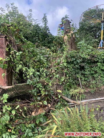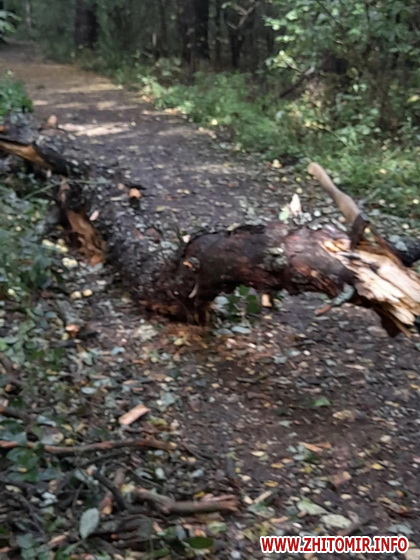 «Останніми днями в місті складні погодні умови: зливи ти сильні пориви вітру. Через негоду цієї ночі в Житомирі впали аварійні дерева: два — у гідропарку, одне — в парку Гагаріна.