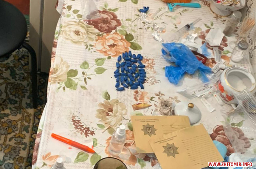 Також правоохоронці провели невідкладний обшук за місцем тимчасового проживання чоловіка у м. Житомирі. У помешканні виявили ще понад 40 полімерних пакунків з кристалічною речовиною.