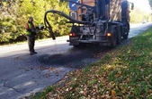 «Погожі жовтневі дні сприятливі для проведення робіт з ліквідації аварійної ямковості. Підрядні організації переважно працюють за допомогою пневмо-струменевих механізмів. Це економно та швидко. Там, де вимагає структура пошкодження, усувають вибоїни гарячим асфальтобетоном», – йдеться у повідомленні.