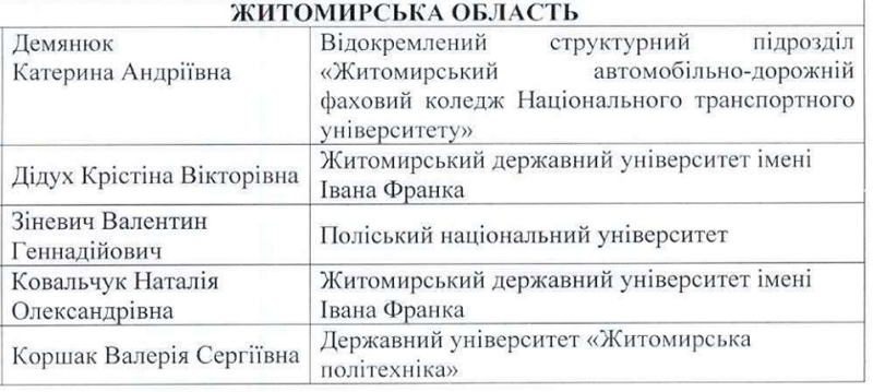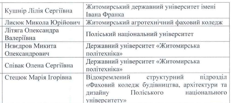 Нетребицька Анастасія Володимирівна – Державний університет «Житомирська політехніка»;
