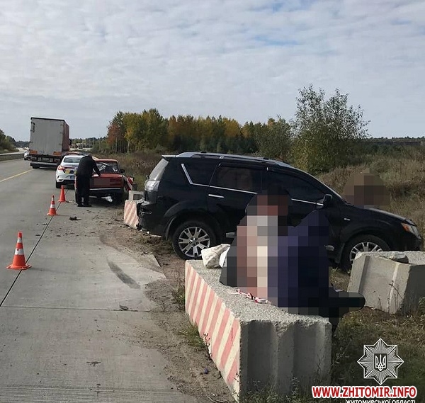 Опівдні 13 жовтня на автомобільній дорозі Київ — Чоп у Житомирській області зіткнулися ВАЗ та Mitsubishi. Автопригода минулася без постраждалих.