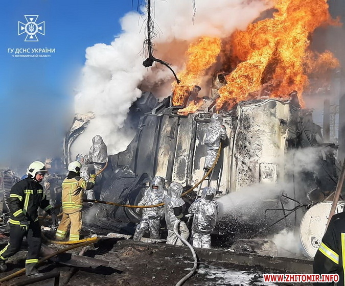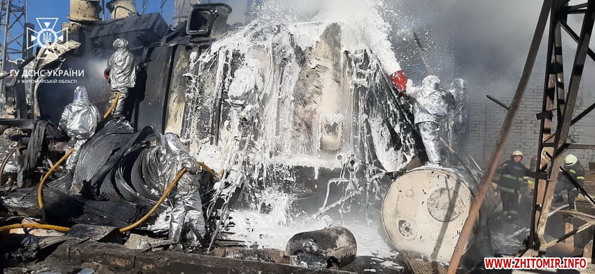«Сьогодні на Житомирщині о 08:40 внаслідок ворожого удару сталася пожежа на об’єкті енергетичної інфраструктури. На ліквідації наслідків загоряння на місці події від ДСНС працювало 5 одиниць техніки та 25 рятувальників. Об 11:35 пожежу ліквідовано. Внаслідок події загиблих немає. Госпіталізована 1 особа, травмована через обстріли», - йдеться у повідомленні.