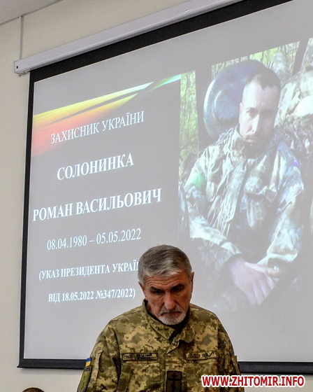 «Я гордий за те, що він, не зважаючи ні на що, 25 лютого після повномасштабного вторгнення нашого клятого ворога на нашу неньку Україну, зателефонував мені з Києва і сказав: «Батьку, я у військкоматі». Я гордий за те, що його побратими наводять жах, дійсно Чорних Запорожців, на клятих наших ворогів. Я, як священник, хочу звернутись до вас: не голосіть за нашими загиблими Героями. Так, сумуйте, так, пам’ятайте, але, найосновніше – своїми щирими молитвами, своїм спокоєм ви повинні дати їм місце в Царстві Божому», — сказав Василь Солонинка.
