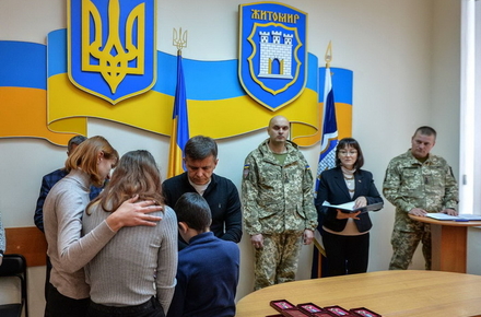 У Житомирі 21 жовтня рідним загиблих військовослужбовців вручили ордени, якими їх нагородив президент.