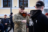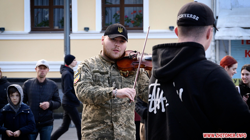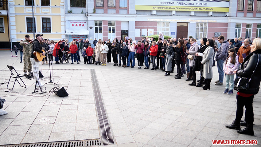 «Культурний десант» дав концерт на вулиці Михайлівській аби закликати житомирян долучитися до підтримки деокупованого міста. Дехто з людей прямо під час виступу віддав свій велосипед.