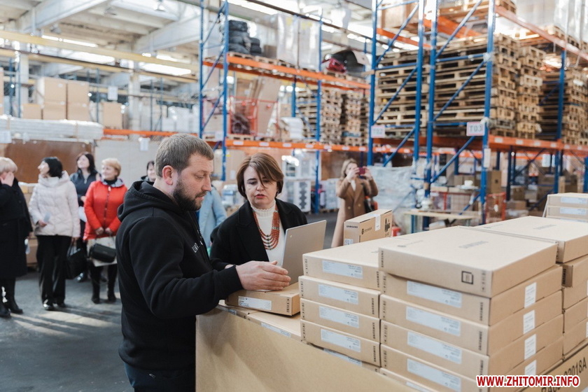 Фото ноутбуків, які передавали в школи Житомирської області в грудні 2021 року