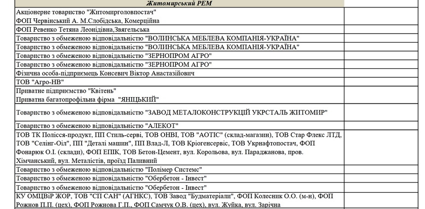 Станом на 17:30 год.3 листопада на сайті АТ «Житомироблнерего» оприлюднений орієнтовний перелік населених пунктів графіку відключень з датами 3-6 листопада, але при натисканні на зазначені дати показує лише перелік підприємств, установ, населених пунктів та вулиць, які планують відключати РЕМ, час запланованих відключень відсутній.
