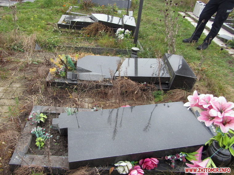 Нагадаємо, 24 жовтня пресслужба поліції інформувала, що у с. Денишах Житомирської області 27-річний чоловік пошкодив пам’ятники та надгробні плити на двох сусідніх могилах.