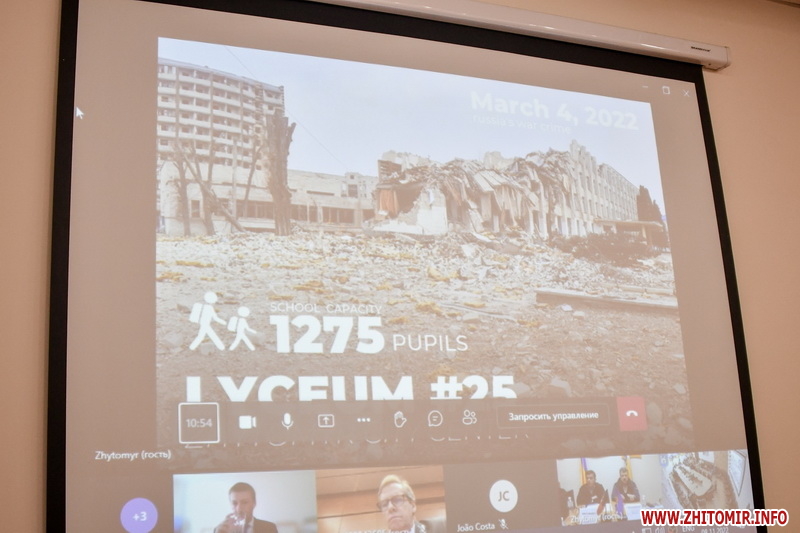 Нагадаємо, 24 серпня, у День Незалежності України, Житомир відвідали міністр закордонних справ Португалії, а також посол цієї країни: говорили про відновлення освітніх закладів. Зауважимо, цього дня майже постійно зберігалася загроза ракетно-бомбових ударів, зустріч закордонних гостей з місцевою владою відбулася у бомбосховищі.