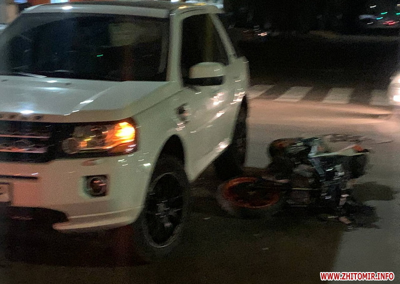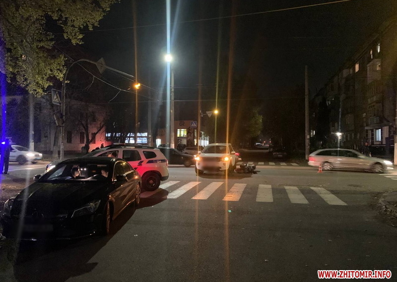 Як повідомляв Житомир.info, у Житомирі ввечері 1 листопада 2022 року на вулиці Київській сталася дорожньо-транспортна пригода за участі мотоцикла та Toyota. Від удару мотоцикл опинився на тротуарі, а водій двоколісника спочатку втік з місця події, а потім повернувся. Зранку 2 листопада поліція надала подробиці ДТП: мотоцикліст отримав травми та був доставлений до лікарні.