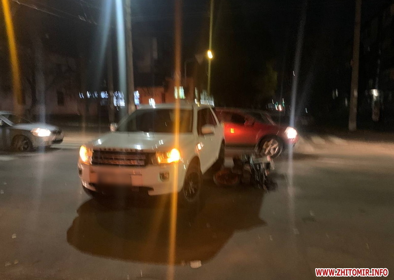У Житомирі 10 листопада близько 17 години сталися дві ДТП: на вулиці Космонавтів автомобіль наїхав на пішохода, а на перехресті вул. Покровської та вул.Степана Бандери зіткнулися Land Rover та мотоцикл.