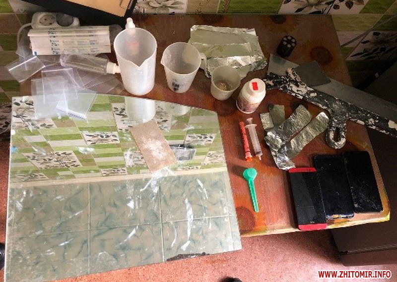 «У ході розслідування кримінального провадження правоохоронці встановили, що до групи наркоторговців увійшли четверо житомирян, віком від 21 до 38 років. За спільною домовленістю у квартирі одного з них, 32-річного фігуранта, було облаштовано мінілабораторію з виготовлення наркотичних та психотропних засобів. Інші учасники були задіяні у схемі подальшого розповсюдження готових заборонених речовин. Аби мінімізувати контакти з потенційними покупцями, чоловіки здійснювали продаж здебільшого через так звані закладки, а кошти зараховувались на банківські картки», – йдеться у повідомленні.
