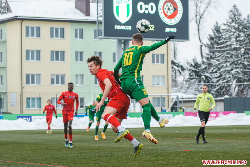 ФК «Полісся» здобув впевнену перемогу над ФК «Діназ» у 13 турі Чемпіонату України з футболу серед команд І ліги «VBET UA Перша». Голами відзначились Деніс Янаков та Сергій Кисленко. Ще один м’яч у свої ворота забив гравець команди із Вишгорода.