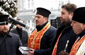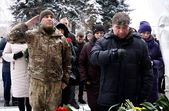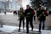 Житомиряни поклали квіти, поставили запалені лампадки до пам’ятного знака Героям Небесної Сотні. Також хвилиною мовчання згадали Героїв та долучилися до спільної молитви.