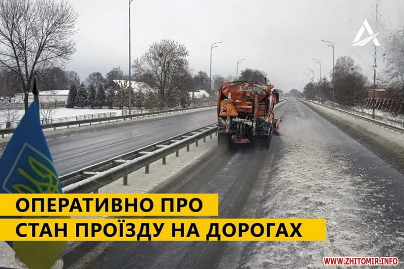 Станом на ранок 23 листопада дороги державного значення, що пролягають через Житомирську область, розчищені від снігу, щоправда, місцями утворилася снігова «каша». За добу для обробки доріг використали 1500 тонн протиожеледної суміші.