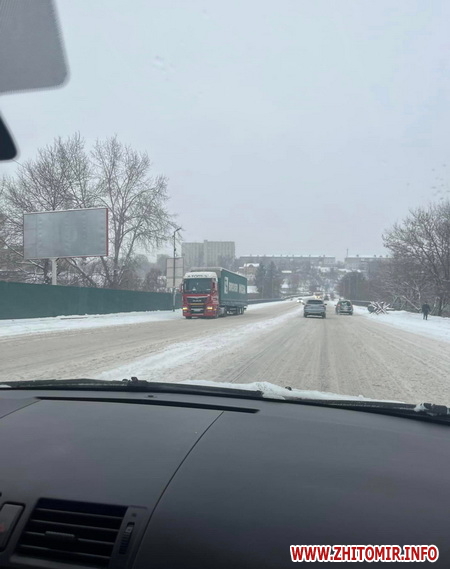 У ніч на 7 грудня у Житомирі та області випав сніг. Станом на 10:00 год. опади не припиняються. Сніжна погода, як завжди, ускладнила пересування автошляхами. Зокрема, у Житомирі труднощі виникли на Бердичівському мосту.