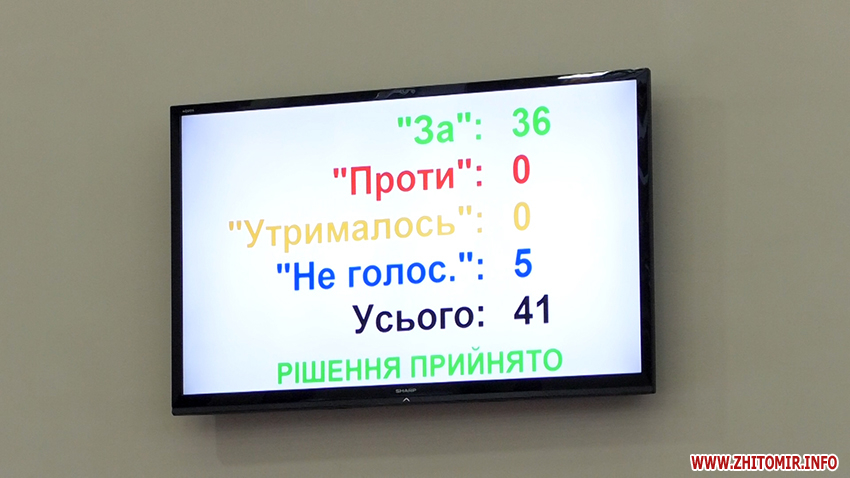 На сесії був присутній 41 депутат, 36 проголосували - «за». П'ять депутатів не голосували за дане рішення: Сергій Білошицький (позафракційний, обраний від ОПЗЖ), Руслан Годований (фракція партії «Пропозиція), Анатолій Мелашенко (позафракційний, обраний від ОПЗЖ), Володимир Нагорняк (позафракційний, обраний від ОПЗЖ), Наталія Рибак (позафракційна, обрана від ОПЗЖ).