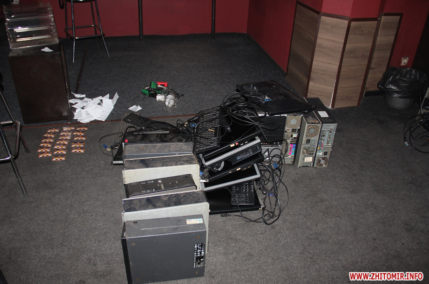 Як повідомляв Житомир.info, 16 листопада 2022 року в Житомирі провели санкціоновані обшуки у підпільних гральних закладах на вулицях Київській та Покровській: вилучили більше десятка одиниць комп’ютерної техніки, чорнову документацію та інші свідчення протиправної діяльності.