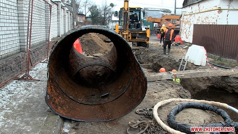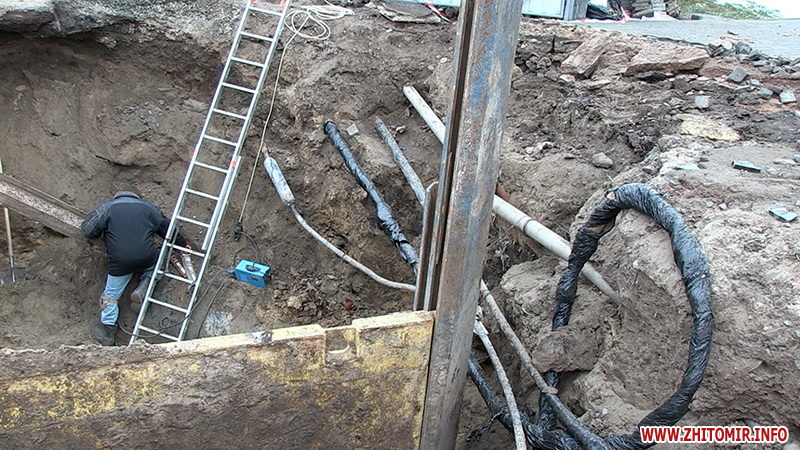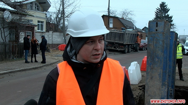 «На цій ділянці працюємо близько 2 тижнів, проходимо вулицю Короленка, прокладаємо методом санації новий трубопровід поліетиленовий діаметром 900 мм на цій ділянці маємо дуже багато переходів других мереж: кабельні, каналізаційні, водяні. Обіцяли 25 (ред. грудня), але технічно неможливо до 25 числа встигнути, бо в нас дуже багато невідповідностей з плановими роботами. Ми зараз знаходимо кути, які були відступні, попередньо ми не знали про них, тому воно затягується. Але до Нового року плануємо завершити повністю монтаж трубопроводу. Після свят буде відключення, буде проводитися промивка, гідравліка трубопроводу і запуск його в роботу», - прокоментував виконроб Євгеній Горщук.
