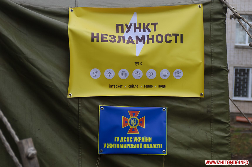 З 23 листопада 2022 року в Житомирі запрацювали “Пункти незламності” - місця, де люди в разі відключення електроенергії можуть зарядити мобільні пристрої, погрітися, поспілкуватися, випити гарячого чаю і скористатися інтернетом у тих пунктах, у яких він є.