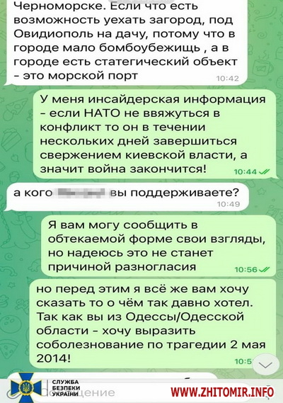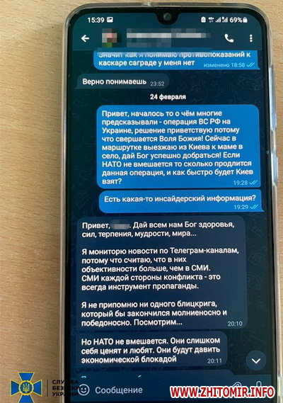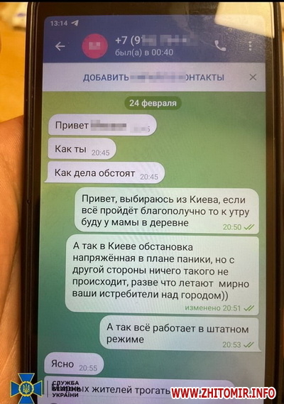 Як повідомляв Житомир.info, 23 грудня 2022 року пресгрупа Управління СБУ у Житомирській області інформувала про підозру юрисконсульту регіональної держустанови, який стверджував, що «окуповані території треба віддати росіянам».