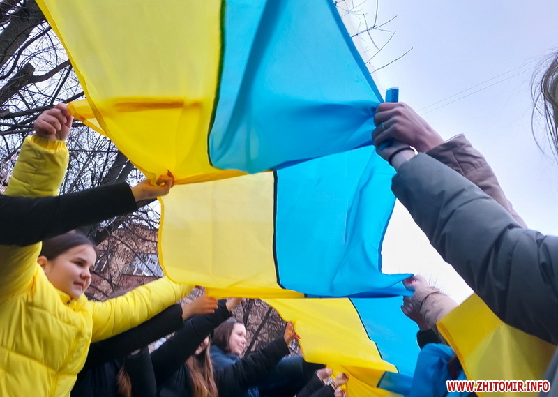У Житомирі учні різних освітніх закладів міста долучилися до акції «Єдині» з нагоди Дня Соборності України. 44 садочки, 32 школи та 5 ПТУ - кожен у своєму закладі долучився до «ланцюга єдності».