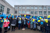 Молодші школярі з кульками та маленькими прапорами пройшли крізь коридор, який утворили старші школярі, символічно єднаючи шлях між двома ліцеями, як усю Україну.