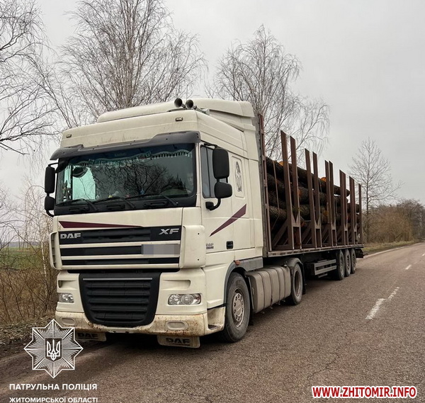 Як повідомляв Житомир.info, 5 січня 2023 року у Житомирі на проспекті Миру патрульні зупинили DAF з причепом, в якому водій перевозив колоди сосни, їх розмір не збігався з вказаним у накладних.