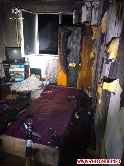 Увечері 19 січня у квартирі однієї з житомирських п’ятиповерхівок сталася пожежа. Рятувальники виявили в оселі непритомного господаря, на ньому вже горів одяг. Чоловіка винесли з квартири, однак він устиг отримати опіки 65% тіла. Постраждалого госпіталізували.