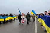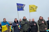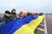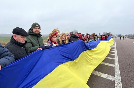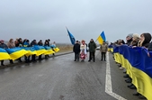 Після завершення урочистої зустрічі всі учасники акції, розгорнувши 50 метрів синьо-жовтого полотнища, утворили «живий ланцюг», що символізувало об‘єднання всієї України.