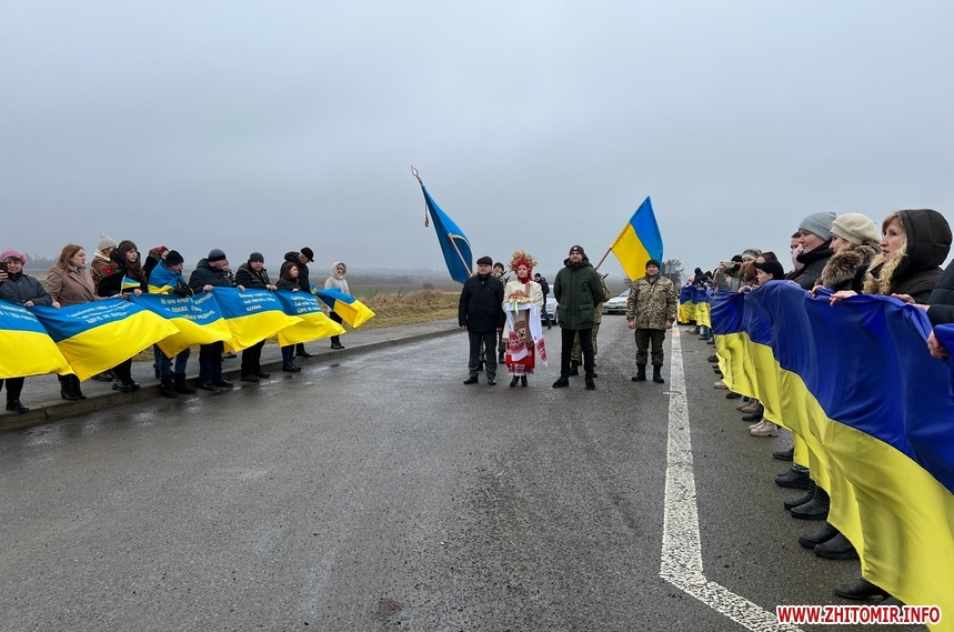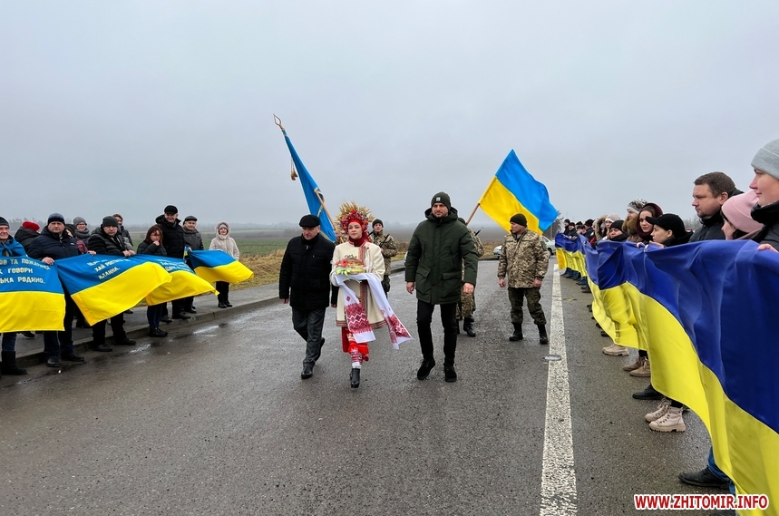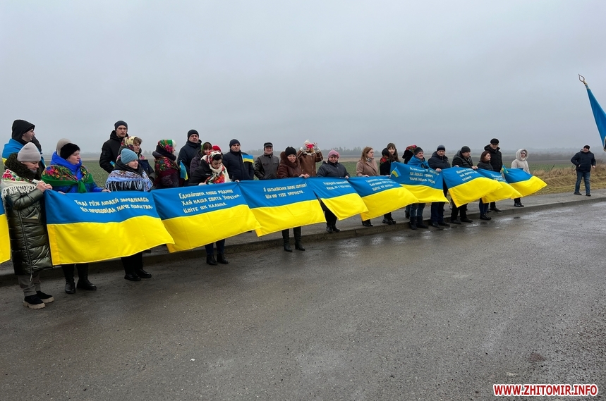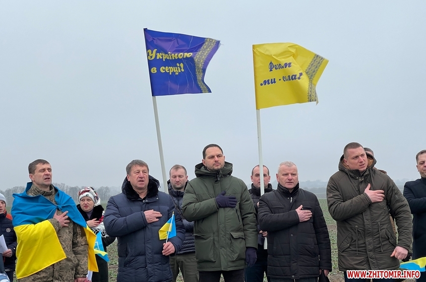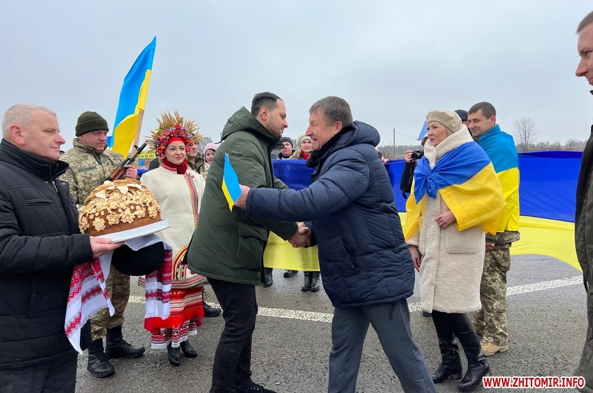 На кордоні Рівненської та Житомирської областей відбулися урочисті заходи з нагоди Дня Соборності України, зокрема жителі сусідніх регіонів розгорнули величезний Державний прапор та утворили «ланцюг єдності».