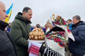 Зазначається, що розпочалася зустріч делегацій вже традиційним обміном хлібом-сіллю та символічним поєднанням двох половин державного стяга.