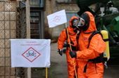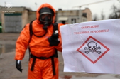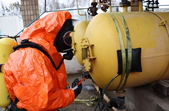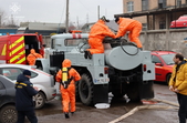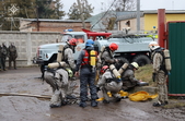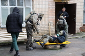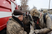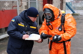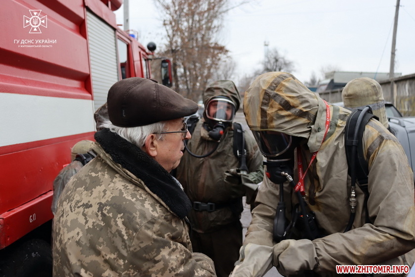 У Житомирі 24 січня рятувальники вчилися ліквідовувати хімічну аварію, що, за легендою, сталася на одному з місцевих об’єктів.