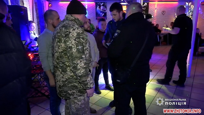 Цими вихідними правоохоронці провели чергову перевірку жителів Житомира та тутешніх розважальних закладів на дотримання комендантської години. Цього разу в полі зору поліціянтів опинилися близько десятка барів та ресторанів міста. Жоден із них, за даними правоохоронців, не працював опісля 24-ї, однак без порушень не обійшлося. В одному з закладів рейдувальники виявили неповнолітнього, який розпивав спиртне.