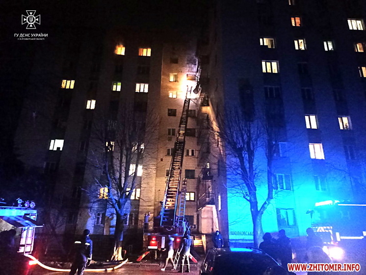З власних джерел Житомир.info стало відомо, що пожежа трапилася на 8 поверсі гуртожитку на вулиці Ціолковського, 14.