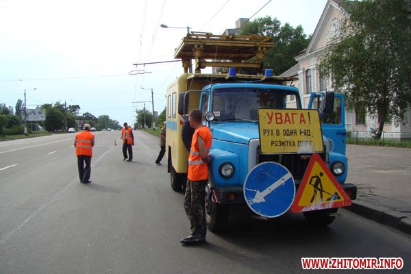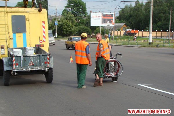 Поновлення дорожньої розмітки активно проводиться на вулицях Житомира. Зокрема, білі смужки «освіжили» на вулиці Київській. Зараз дорожники працюють на вул. Перемоги, проходячи по кілька кілометрів у день. Бригадир робочої групи запевняє: робота по Перемоги буде завершена вже до кінця цього тижня.