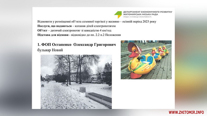 Нагадаємо, у червні 2022 року виконком дозволив КП «Парк» самостійно надавати дозволи на сезонну торгівлю в житомирських парках.