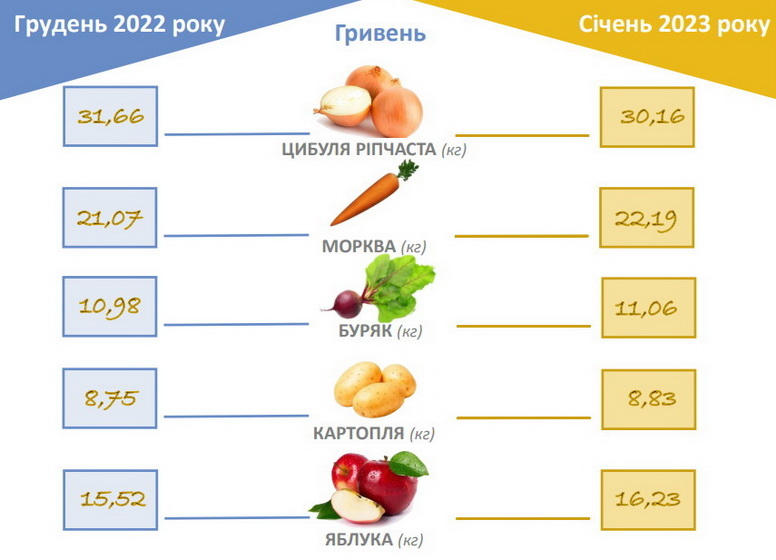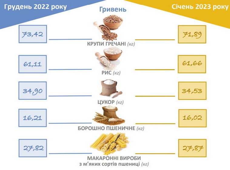 Як у січні змінилися середні споживчі ціни на продукти, статистики 15 лютого показали в інфографіці.