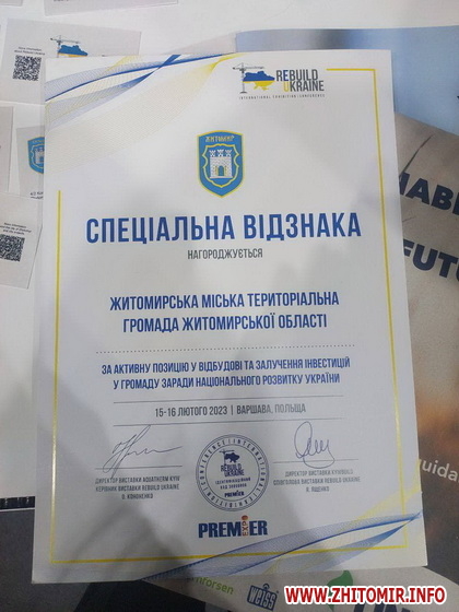 Житомир отримав спеціальну відзнаку на міжнародній виставці у Варшаві. Rebuild Ukraine – це потужний майданчик для інвесторів та громад, які зможуть залучити іноземний бізнес.