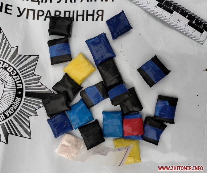 У Житомирі 20 лютого поліцейські регіонального Управління боротьби з наркозлочинністю ДБН НПУ спільно з працівниками Житомирського райуправління затримали житомирян, віком 18 та 19 років, просто під час здійснення закладок.