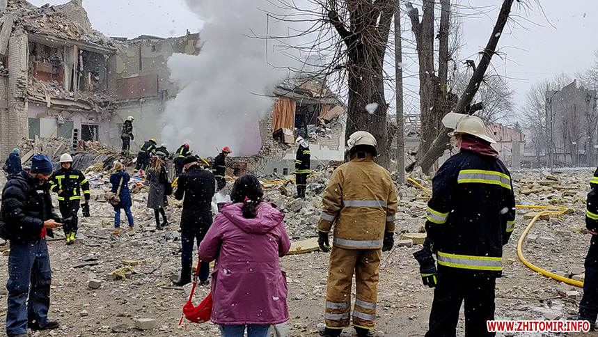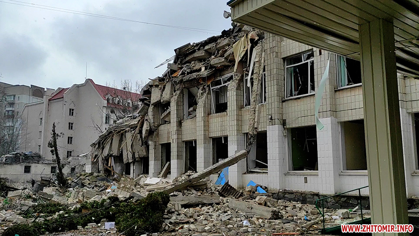 Три дні потому російські окупанти бомблять ліцей №25 у середмісті Житомира.